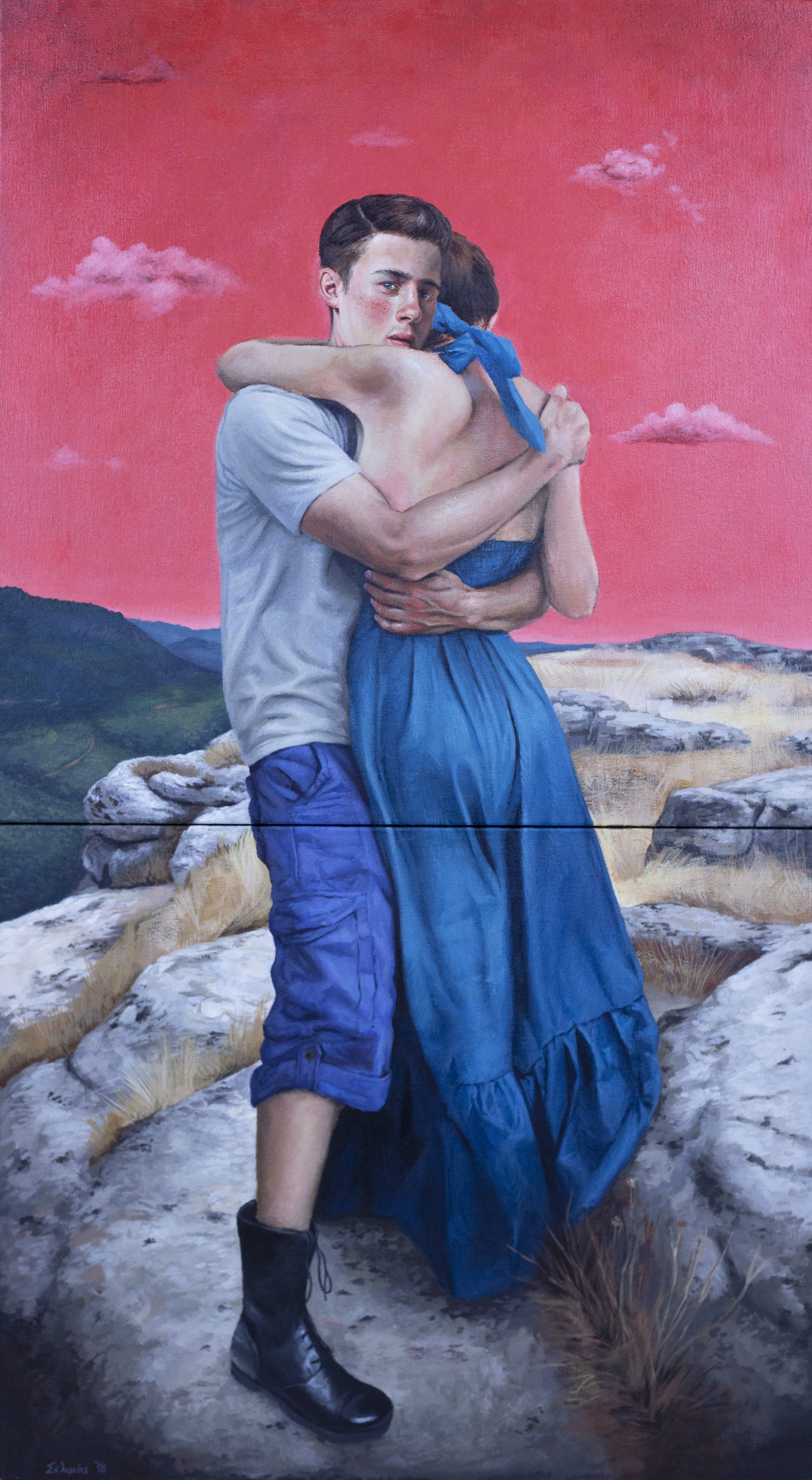 The hug, ακρυλικά σε καμβά, 2018, 90x50cm
